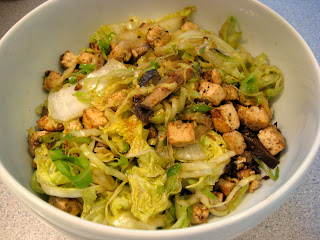 Prepare the remaining vegetables, and then heat up some oil to cover the bottom of a wok. When it's quite hot, add the tofu and stir fry 'til a little crispened. Remove to a bowl, clean wok, and return it to the heat.