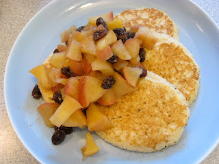 Quinoa is a funny little grain - a seed in fact, highly nutritious, and a good wheat-free alternative to couscous for me. It has a distinct fresh nutty flavour though, so I've been a bit wary about including it in sweet recipes. The vanilla and honey in this recipe balances the quinoa flakes quite nicely, though. Served up with cinnamon-raisin apple compote, it is good eats!